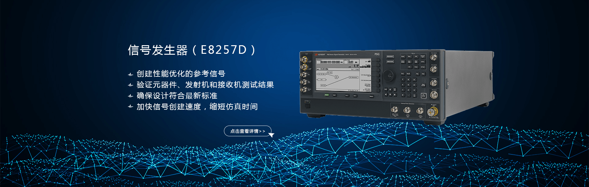 主要產(chǎn)品有:頻譜分析儀,網(wǎng)絡分析儀,綜合測試儀,藍牙wifi測試儀,噪聲系數(shù)測試儀,接收機,電話測試儀,高、低頻信號源,音、視頻信號分析儀,高精度萬用表, LCR/ 電橋、各種通信電源等。經(jīng)營的儀器品牌主要有:Keysight/Agilent (惠普 / 安捷倫)、 R/S (羅德 & 施瓦茨)、 Anritsu (安立)、Litepoint、 FLUK( 福祿克 ) 、 TEK (泰克)等。
